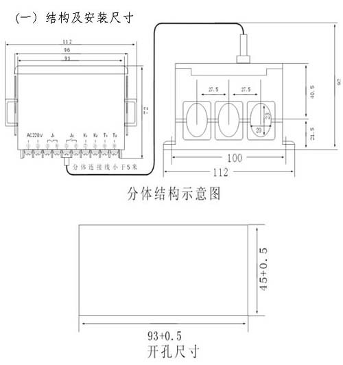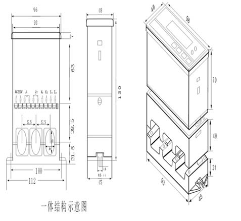 二、特点 1、采用微机技术和高性能低功耗电路。运算高速,性能稳定。 2、整机模块化结构,卡式电流传感器,体积小,安装方便。也可分体安装,主体外形尺寸按照国际仪表装置标准。 3、采用数字处理技术,测量精度高,线性度好。,对故障判断速度快,精确可靠。 4、高清晰宽温带背光LCD显示,设置参数与测量及故障记录直观方便。 5、可以与计算机通讯构成远程监控与一体的电机保护网络。 6、一机多用,可取代电流表,电流变送器,热继电器,漏电继电器,电压表。
